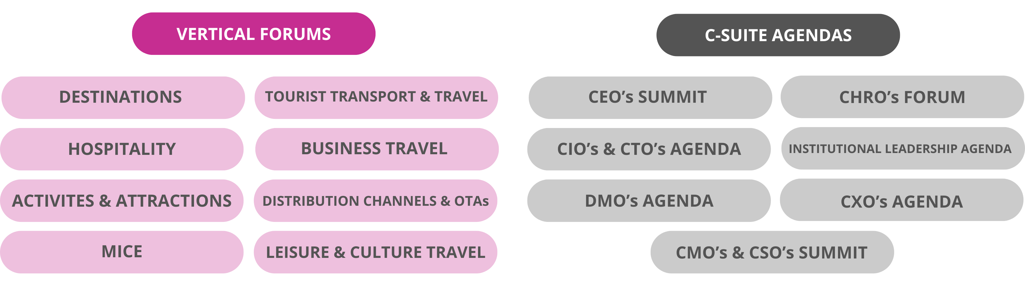 8 vertical forums, tailored to each segment of the industry, featuring 7 C-level agendas dedicated to the specific needs and challenges of different tourism professional profiles: